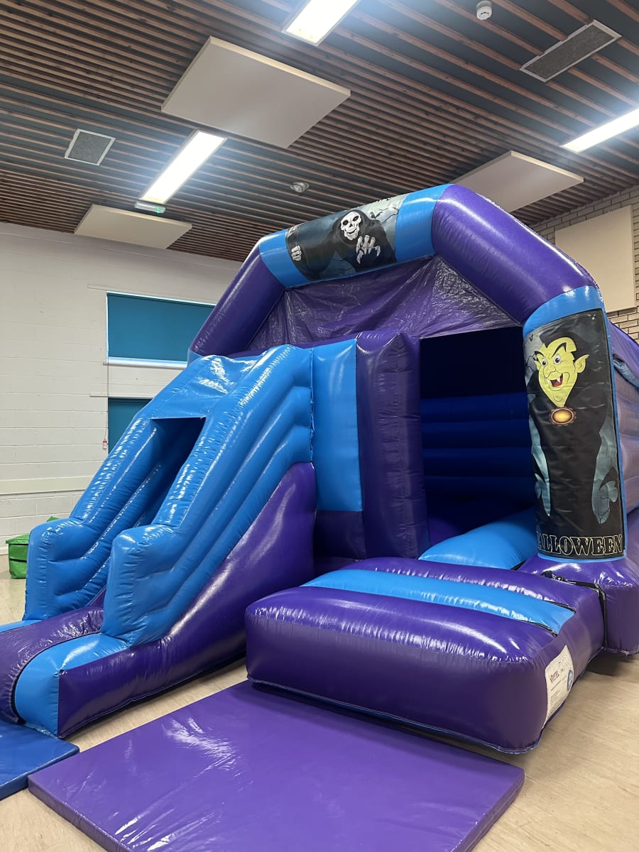 This Halloween, elevate your party with our thrilling Halloween-themed bouncy castle featuring an exciting slide! Available for hire throughout Cardiff and the Vale of Glamorgan, it's the perfect attraction for any spooky celebration.
