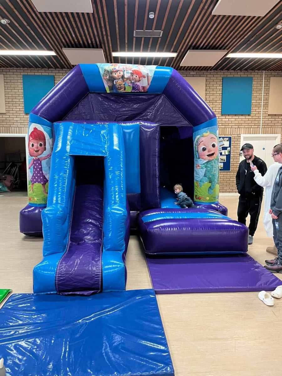 Cocomellon Front Slide Bouncy Castle Blue/Purple