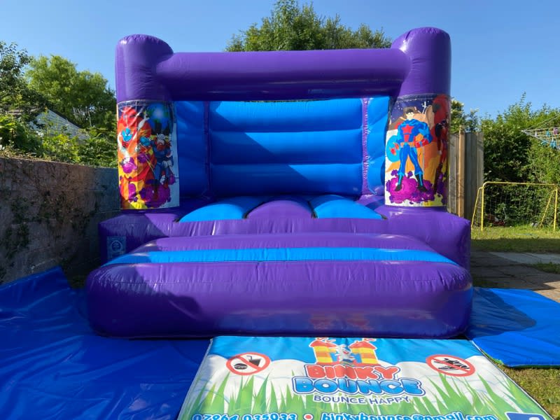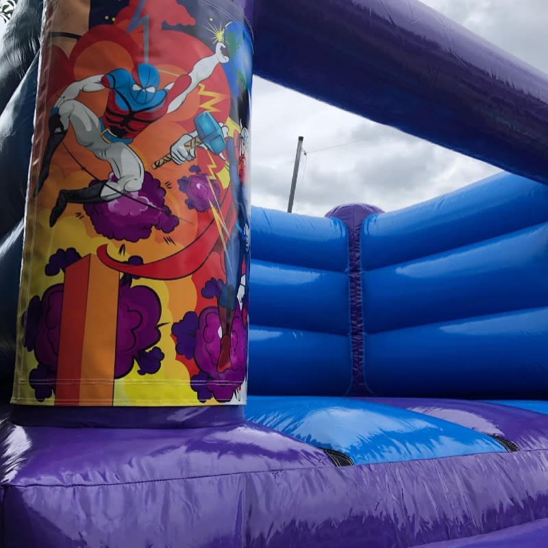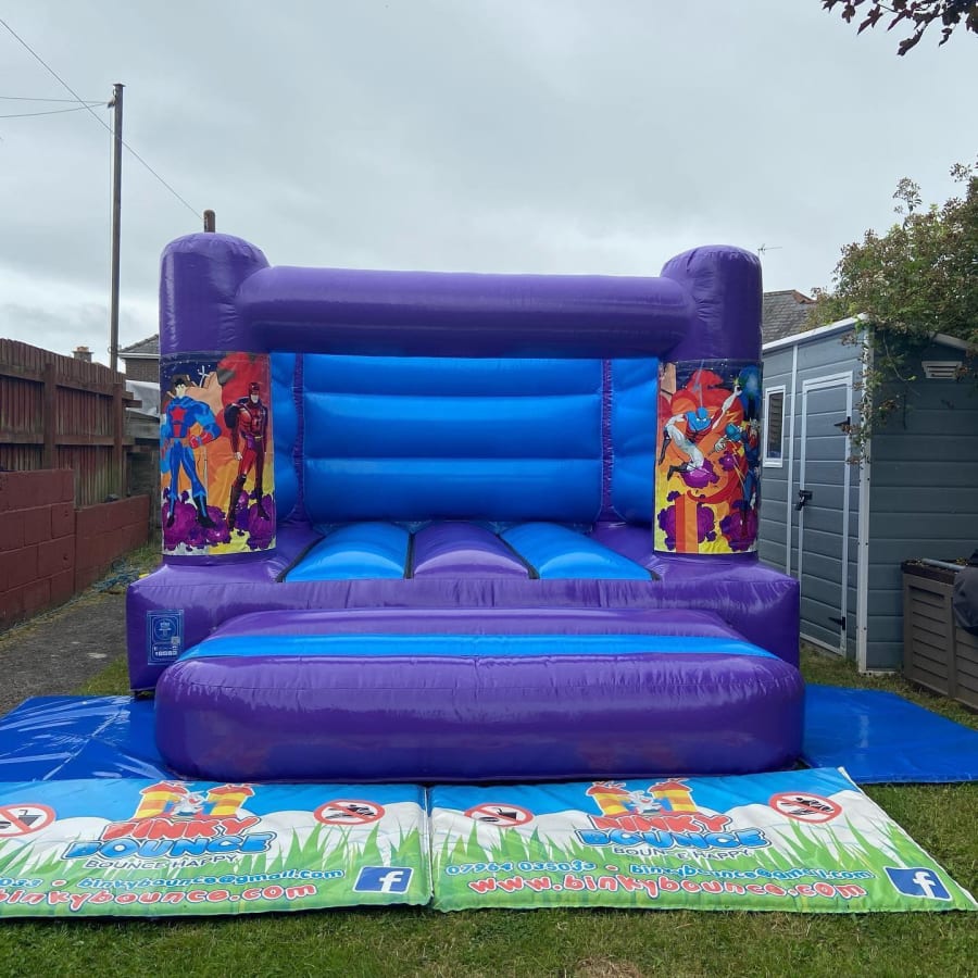 Superhero Theme Low Height Bouncy Castle (Blue/Purple )