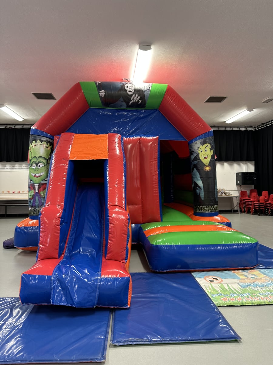 Make your Halloween party unforgettable with our exciting Halloween-themed bouncy castle featuring a built in inflatable slide, available for hire across Cardiff and the Vale of Glamorgan.